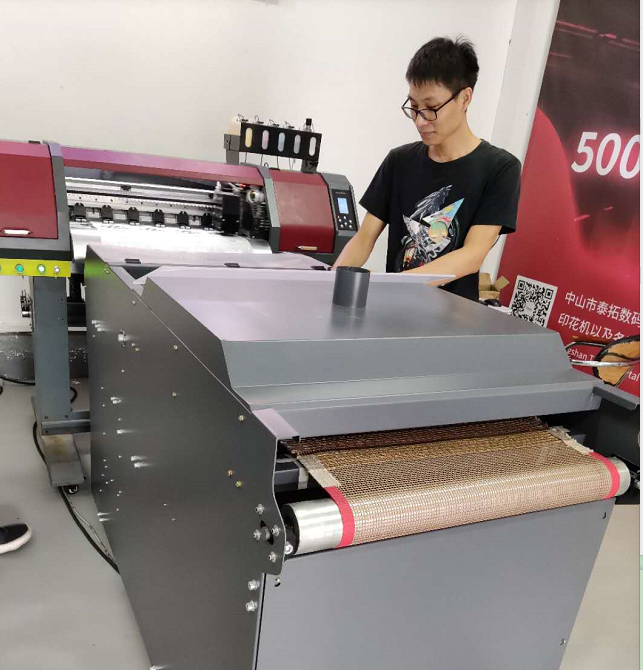 Titao digital offset stamping, only need to invest a set of stamping printer and powder shaking machine, basically a one-time investment, covers an area of less than a parking space, and is a one-stop hollow printing and automatic powder shaking, out is the finished product of hot stamping, high efficiency.